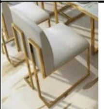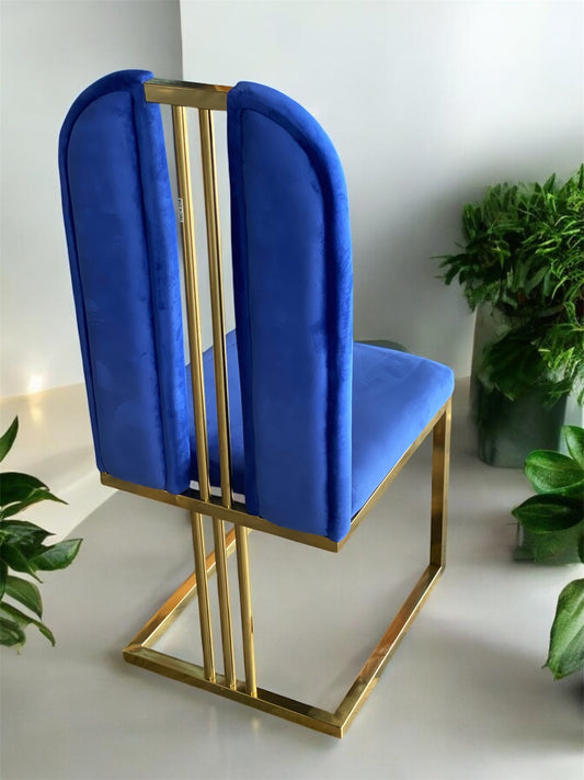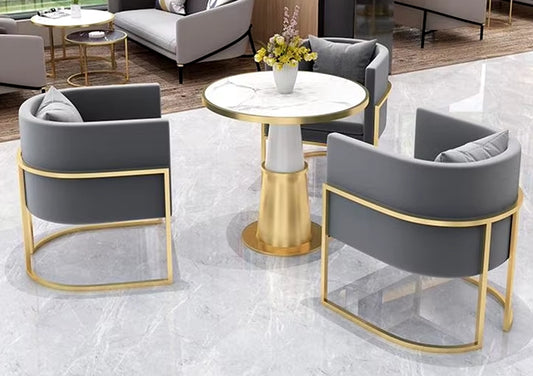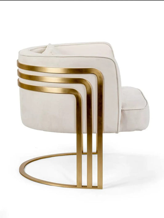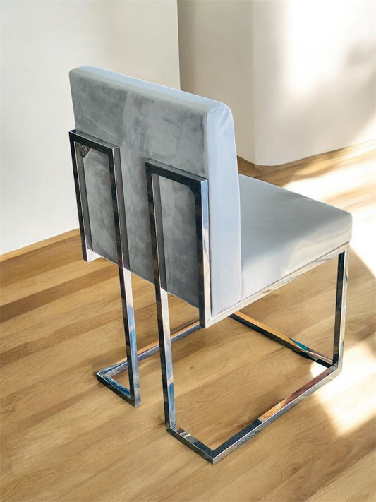 Modern Linen Dining Chair Upholstered in Grey Stainless Steel Leg Gold